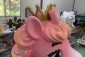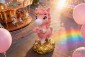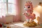 The unicorn is finished ingentle pastel pink tones, with a smooth gradient transition across the body. The face is delicately sculpted withlarge expressive eyes, rounded contours, and a friendly smile, enhancing its approachable and child-friendly character. Agolden crown with pastel accentssits atop the head, reinforcing the fairy-tale theme.