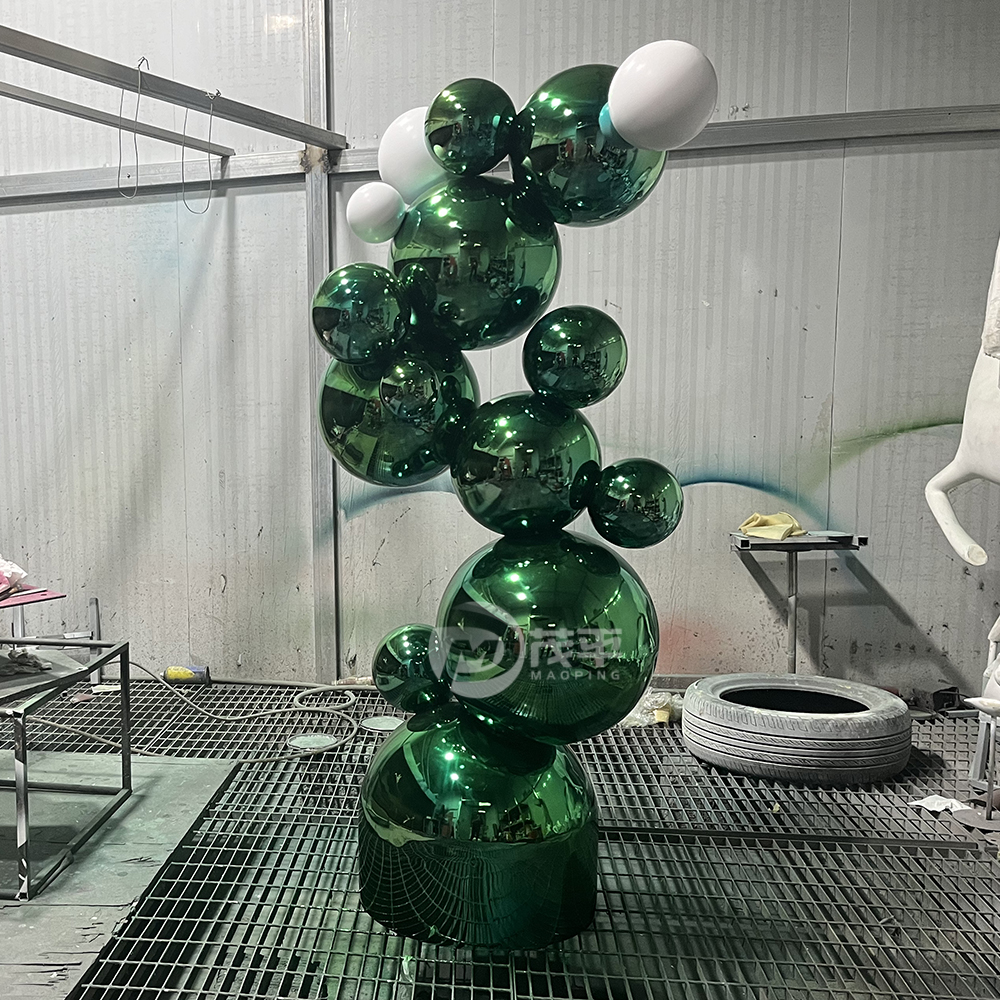 Creative shiny stainless steel green ball sculpture for staircase decoration