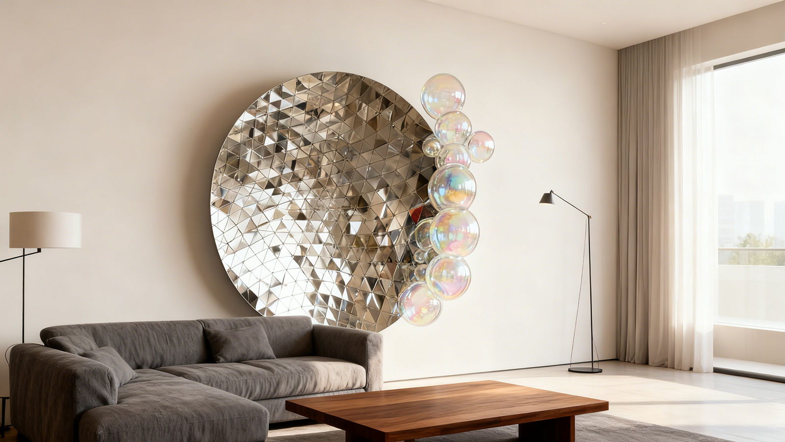 Luxury concave stainless steel wall sculpture with mirror-polished geometric panels and bubble design. Perfect for modern interior wall décor in hotels, villas, and high-end spaces.