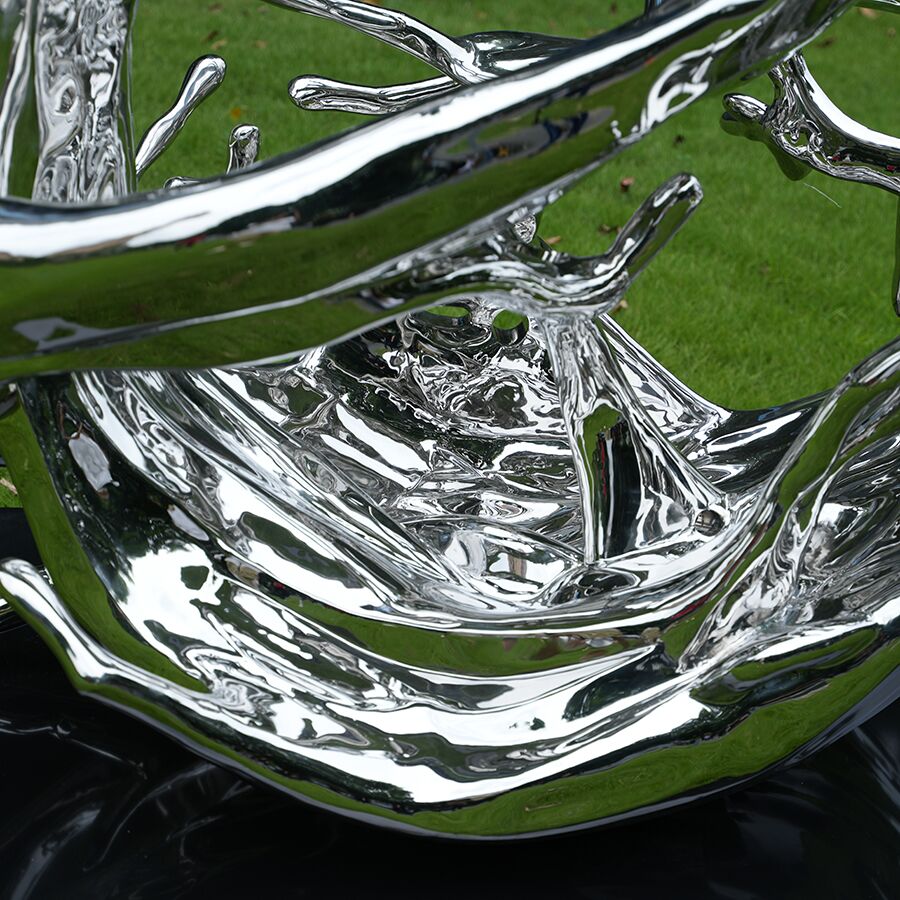Elevate your urban space with our custom mirror-polished stainless steel wave sculpture. Expertly crafted for durability and high visual impact, this contemporary landscape art piece reflects the beauty of its surroundings. Perfect for waterfronts and corporate plazas. Contact Maoping Art for manufacturing details.
