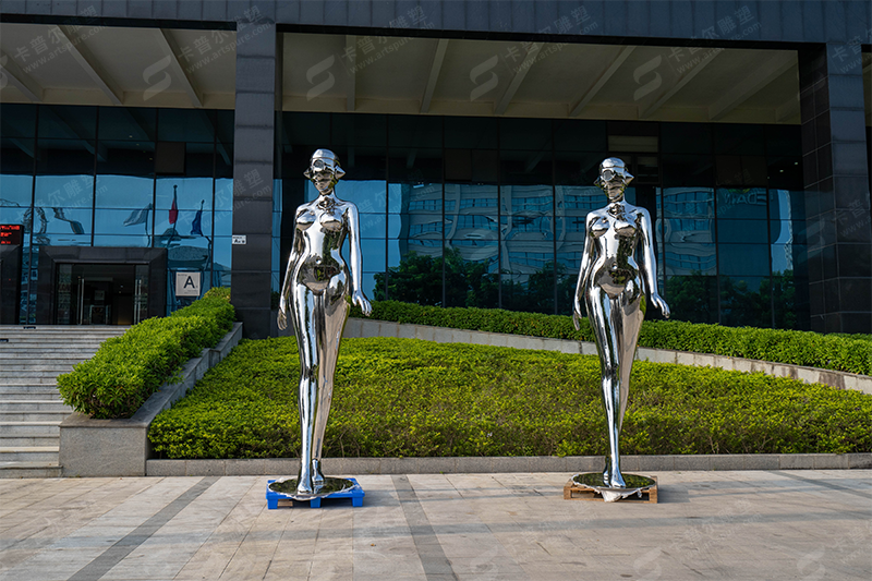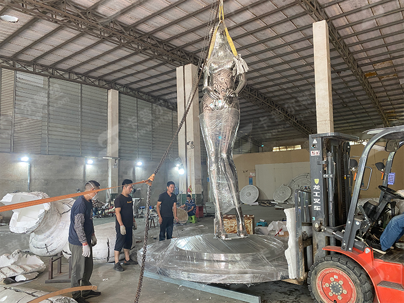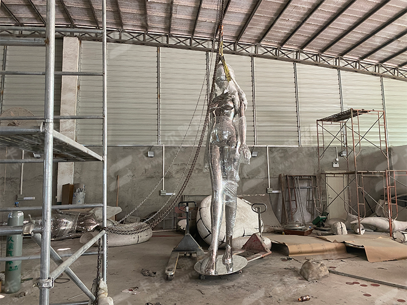 The 10 feet stainless steel female robot sculpture serves as a powerful commentary on technology and its role in our society. It invites viewers to ponder our connection with machines and the potential future of humanity and artificial intelligence. With its striking design and philosophical underpinnings, this sculpture is an exceptional additon to any outdoor art space or technology exhibition.