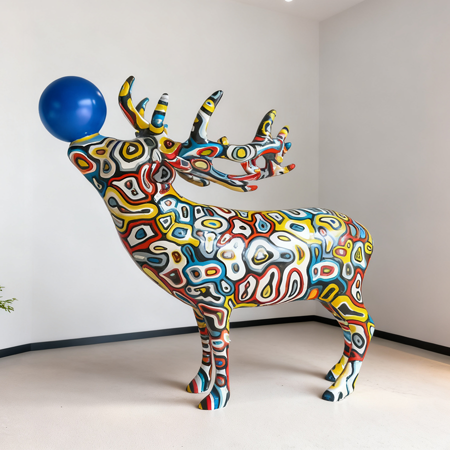 Fiberglass Painted Deer Sculpture | Colorful Modern Animal Art for Interior Decoration