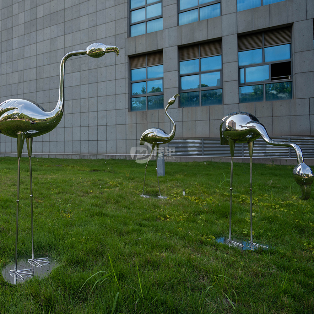 The flamingo sculpture is a testament to the beauty and elegance of one of nature’s most distinct creatures: the flamingo, Standing tall and regal, this striking sculpture masterfully combines the precision of modern metallurgy with the fluidity of organic form. Crafted meticulously from the fines stainless steel, the sculpture is a visual ode to these captivating birds.