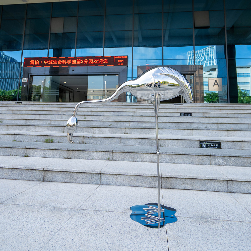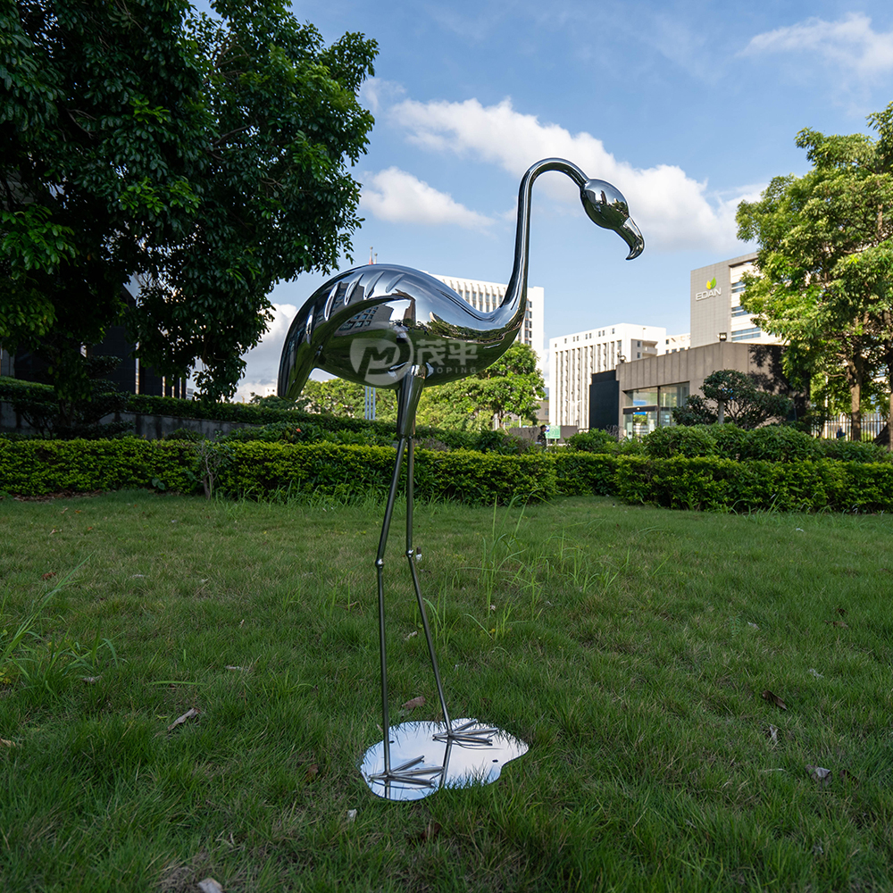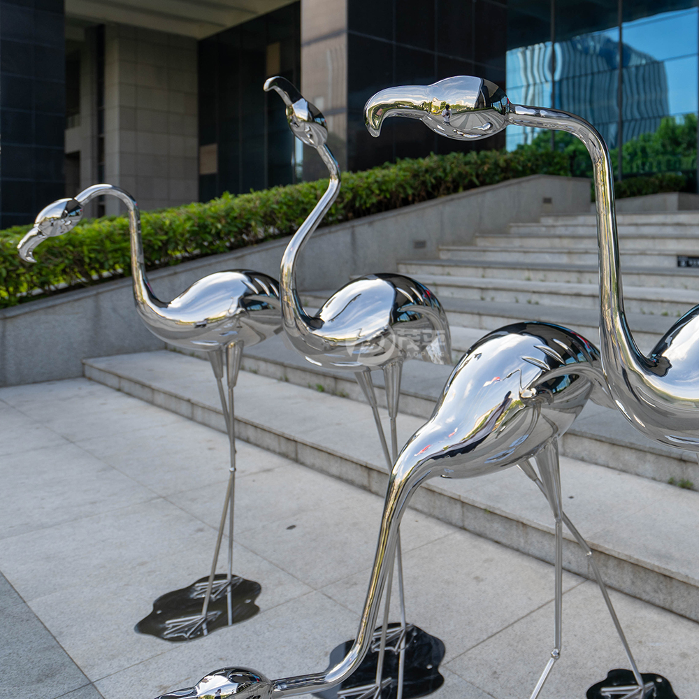 The reflective surface of the stianless steel works wonders in bringing the sculpture to life. In sunlight, the flamingo glows with warmth, its metallic surface mimicking the bird’s natural pink hue. At dusk, it takes on a cooler, more mysterious tone, mirroring the transformation of nature during twilight.