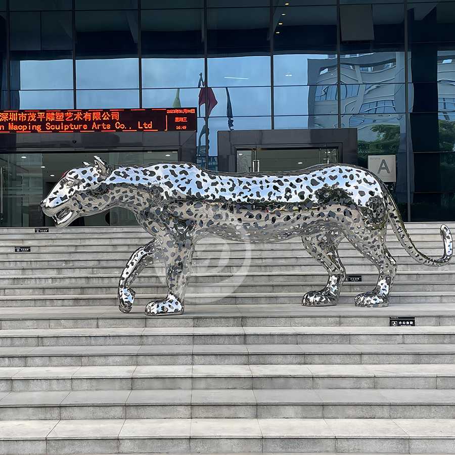 Outdoor Large Stainless Steel Sculpture Modern Hollow Leopard Sculpture Garden Decoration Metal Art MP-O0097