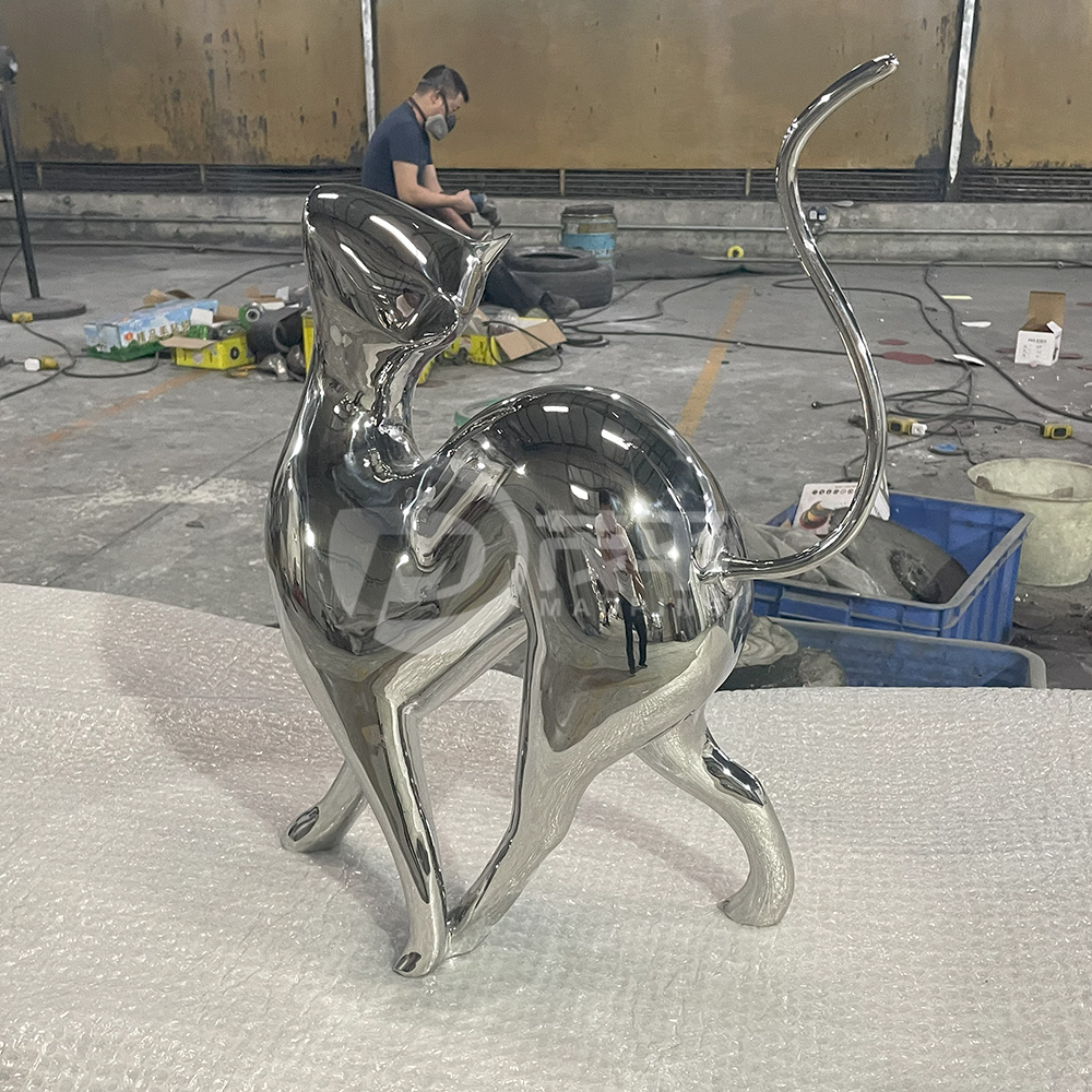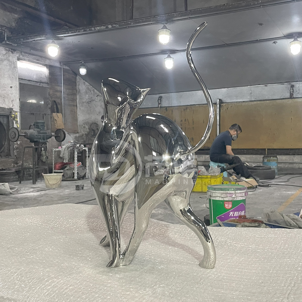 Crafted with precision and care, this Stainless Steel Cute Cat Sculpture is a perfect addition to any garden or yard. Made from high-quality stainless steel, it is not only aesthetically pleasing but also durable and resistant to weather elements. The playful design features a charming cat in a lifelike pose, capturing the whimsical spirit of our feline friends. Its reflective surface adds a contemporary touch, shimmering beautifully under sunlight and creating an enchanting ambiance in your outdoor space.