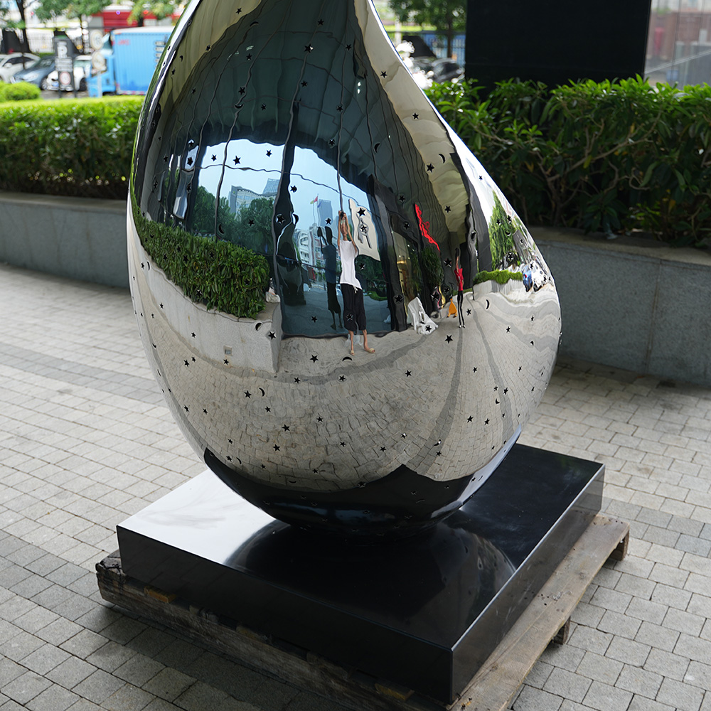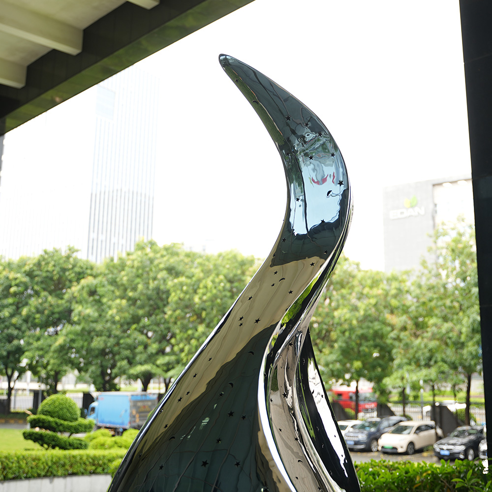 Crafted from high-quality 304 stainless steel, the surface is meticulously mirror-polished to reflect its surroundings, creating a mesmerizing visual impact from every angle. Whether placed in a corporate plaza, hotel entrance, garden, or cultural institution, this piece serves as both a sculptural landmark and a reflection of contemporary art aesthetics.