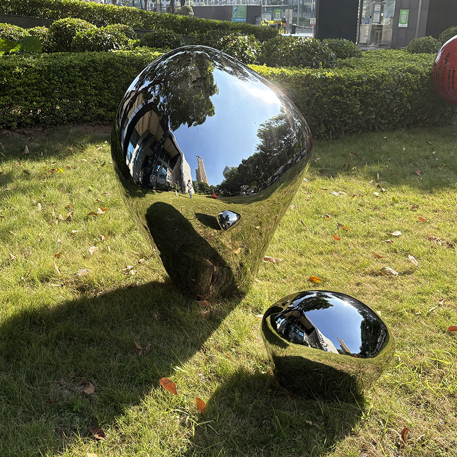 High-Reflectivity Mirror Finish: Each piece is hand-polished to a flawless mirror shine. This “liquid metal” effect allows the sculpture to absorb and reflect its surroundings—greenery, sky, and buildings—making it appear almost translucent.