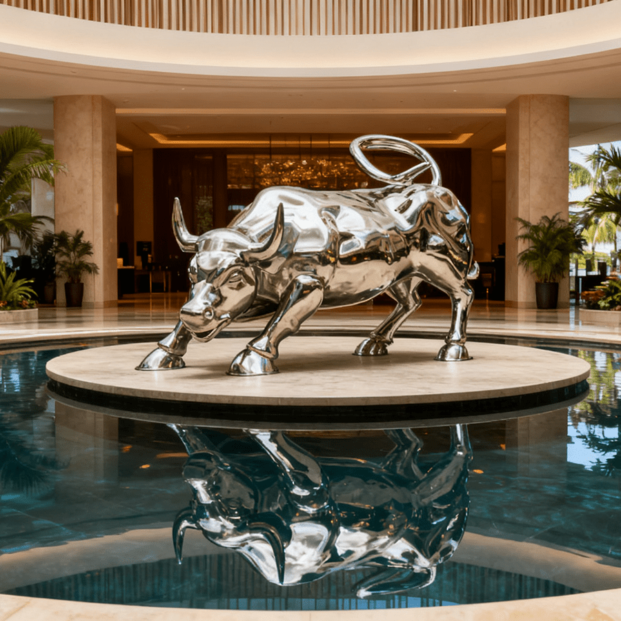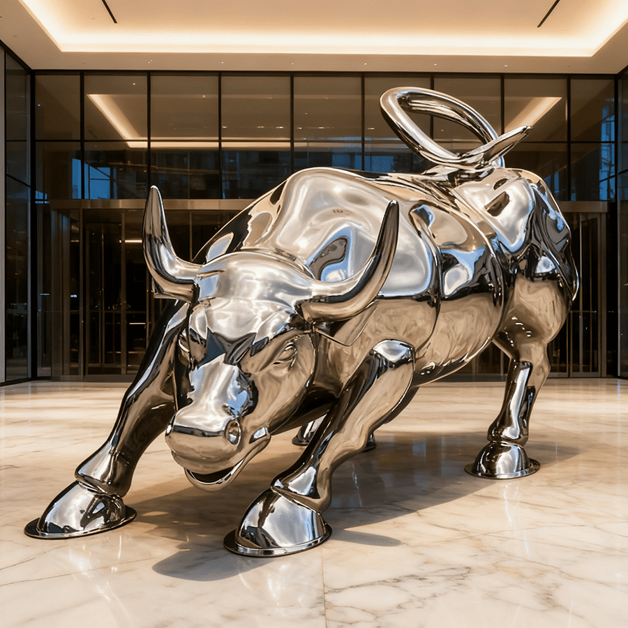 Discover our stainless steel bull sculpture, a mirror-polished modern artwork symbolizing strength, wealth, and resilience. Perfect for corporate offices, outdoor plazas, hotels, and luxury estates. Durable, weather-resistant, and striking in design.
