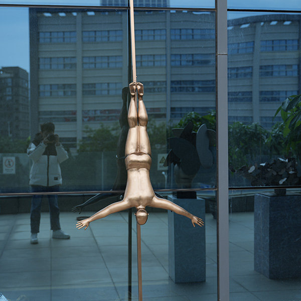 Elevate your architectural spaces with our custom, wall-mounted diver sculpture. Crafted from durable stainless steel or premium fiberglass with a metallic finish, this dynamic piece is perfect for luxury hotels, corporate lobbies, and bespoke water features. Partner with us for custom sculpture design and manufacturing.