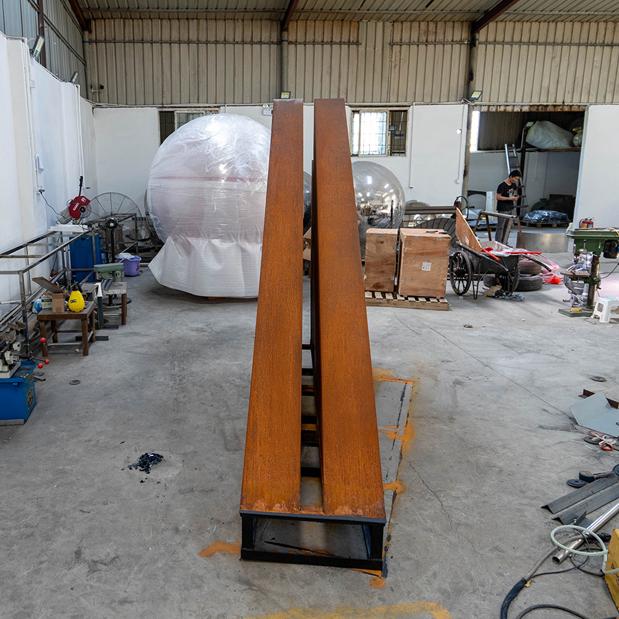 Customization: Available in different sizes, finishes, and combined material options (Corten + stainless steel / bronze / painted steel)