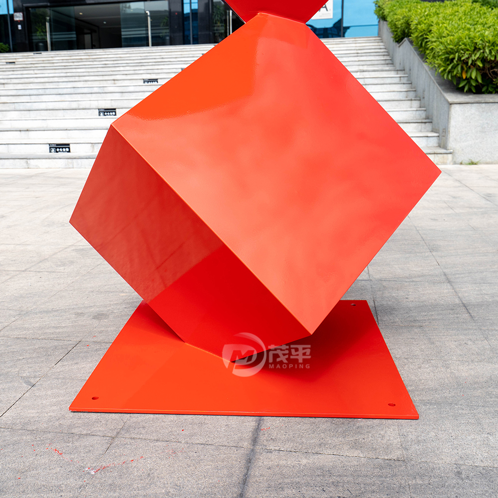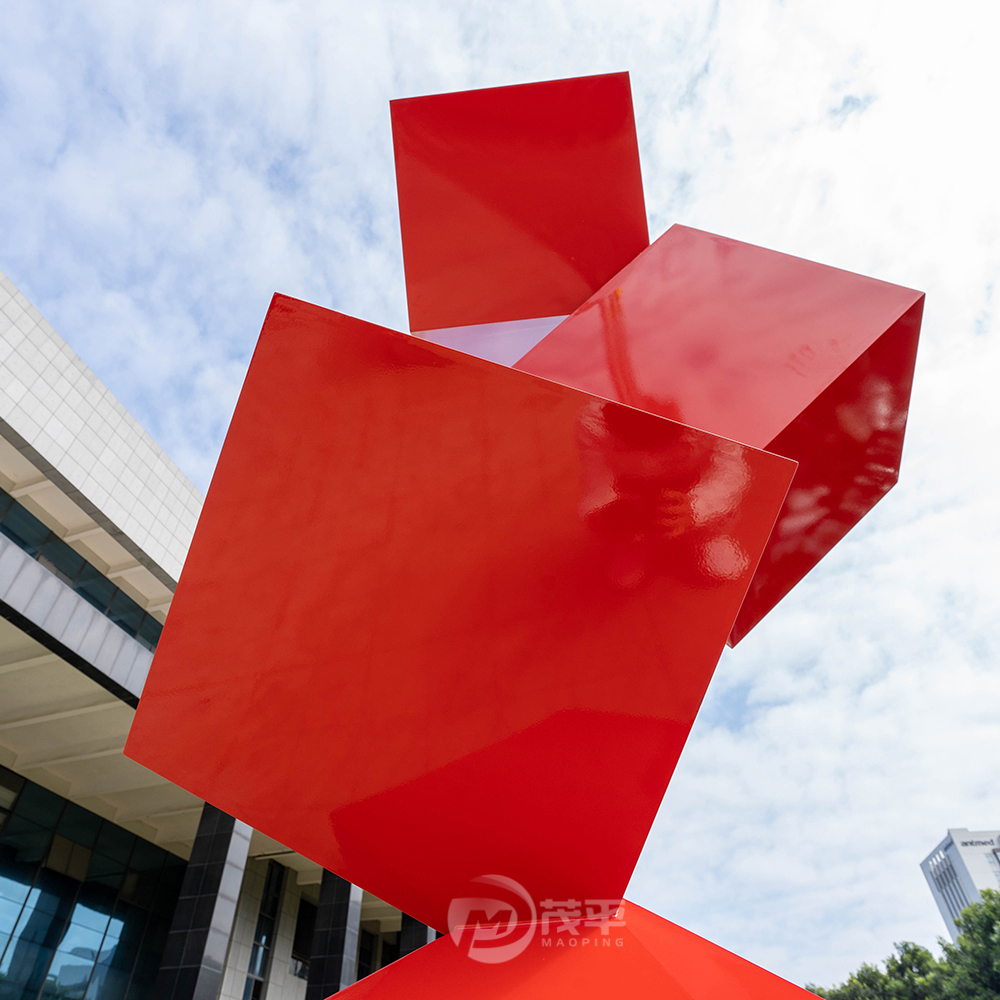 This 2-meter stainless steel sculpture showcases a modern and dynamic design featuring a sequence of bold red cubes stacked in perfect geometric balance. The sculpture’s clean lines and striking color create a sense of energy, innovation, and stability — making it a powerful statement piece for corporate plazas, universities, art parks, or modern architectural landscapes.