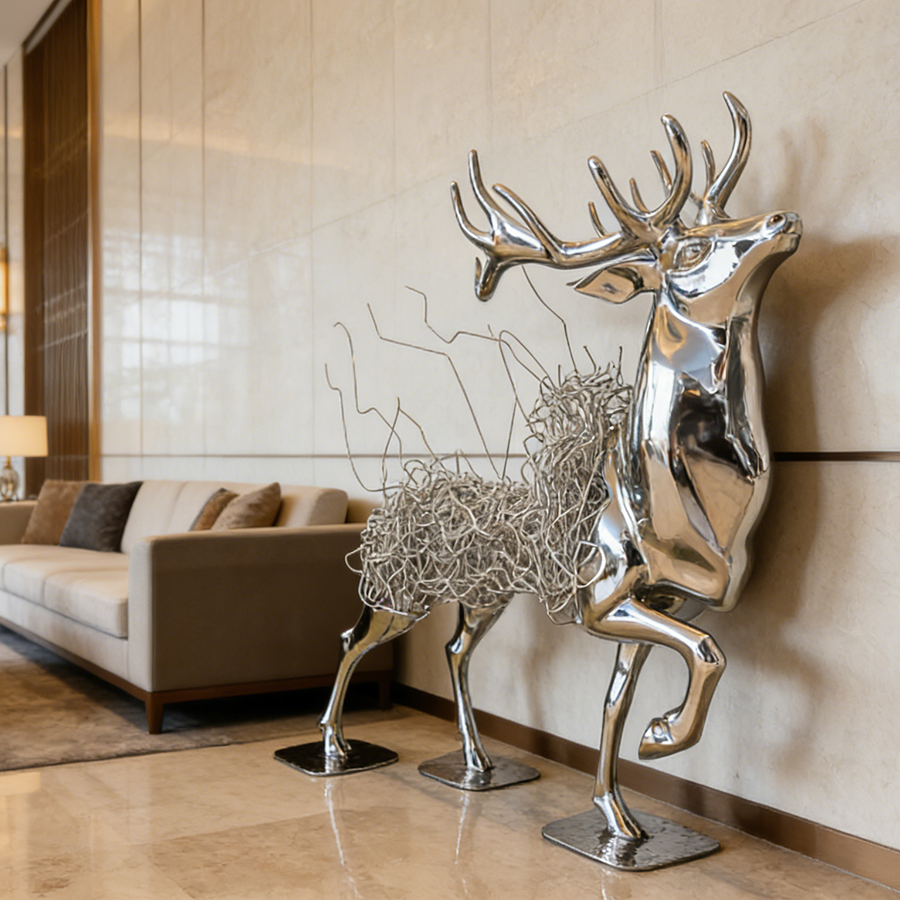 This deer sculpture is ideal for luxury residential interiors, hotel lobbies, villas, showrooms, galleries, and corporate spaces. Its contemporary aesthetic pairs seamlessly with modern, minimalist, and luxury interior design styles. Sizes, finishes, and structural details can be fully customized to meet specific project requirements.
