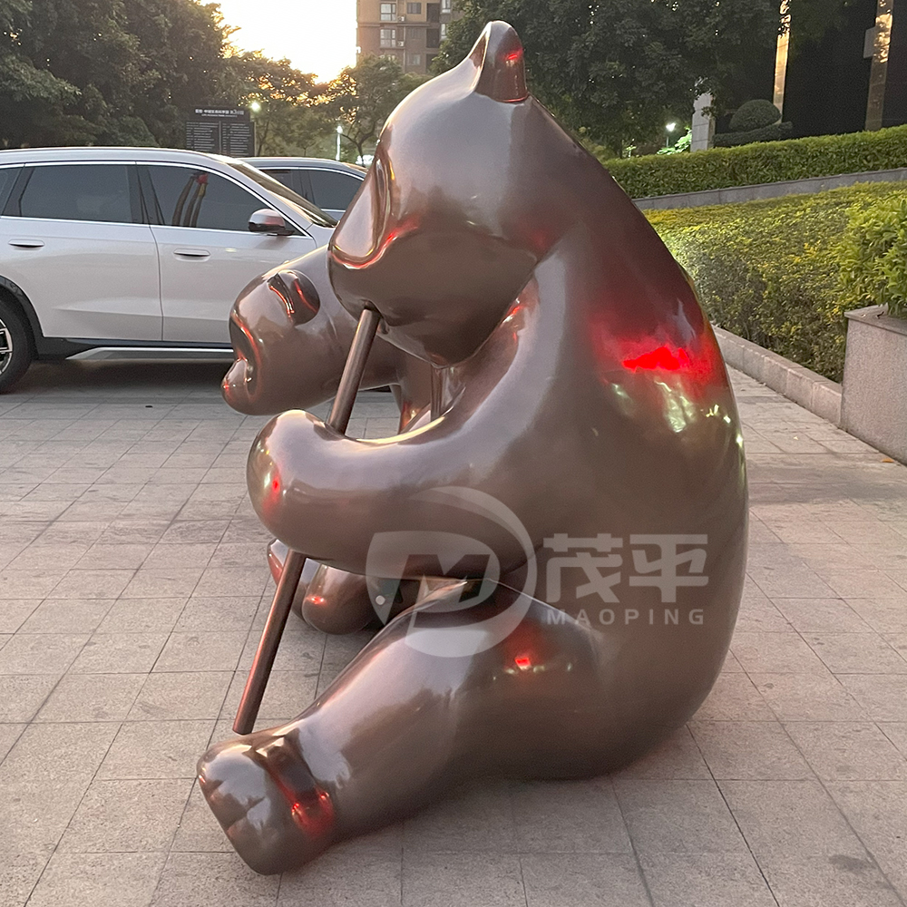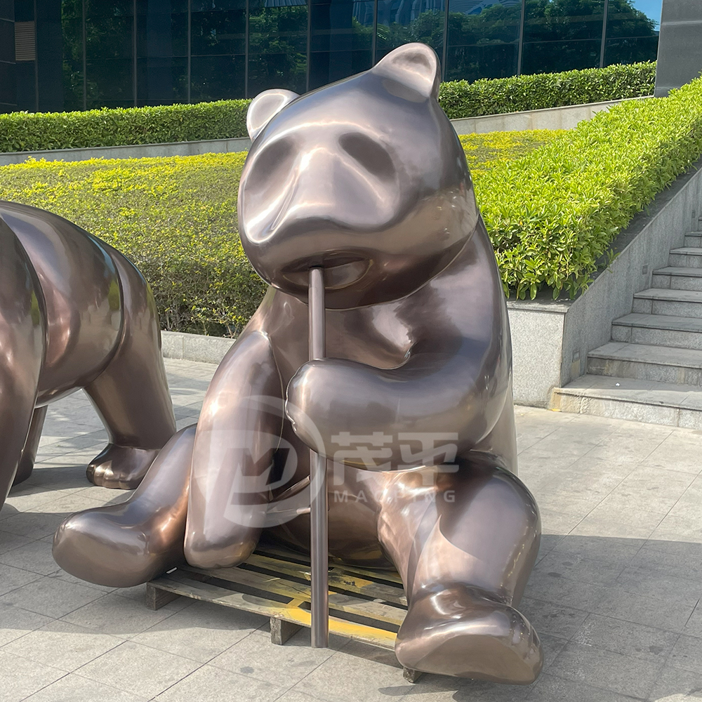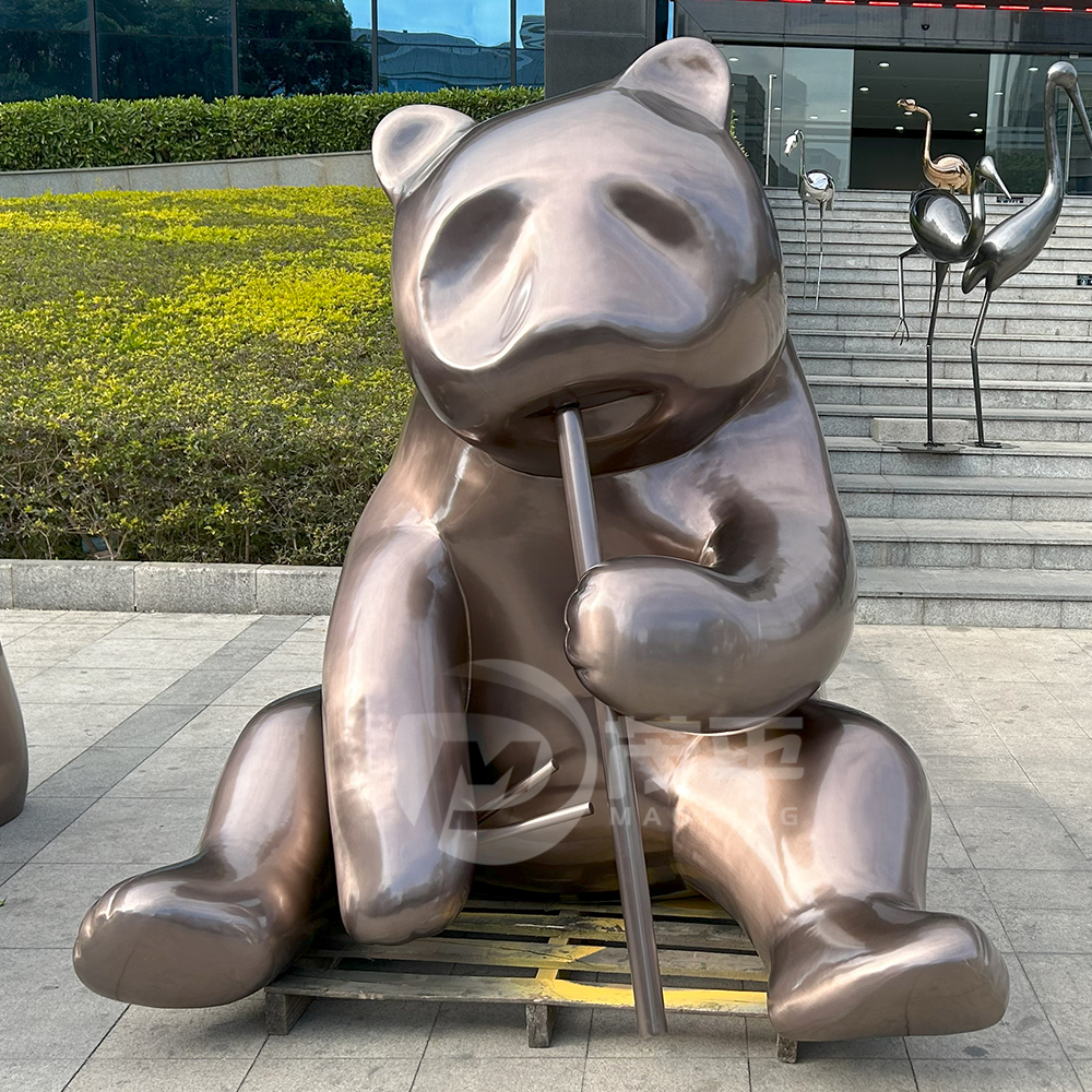 Outdoor theme park decoration large stainless steel panda sculpture MP-O0084