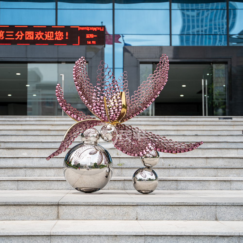 The stainless steel hollow flower sculpture is an enchnting combination of form, space, and material. Its aesthetic appeal, coupled with its symbolic connotations of growth, vitality, and resilience, make it a mesmerizing piece of art. Whether placed in an urban park, a garden, or a public square, it severs as a refreshing reminder of the beauty of nature and the transformative power of art.