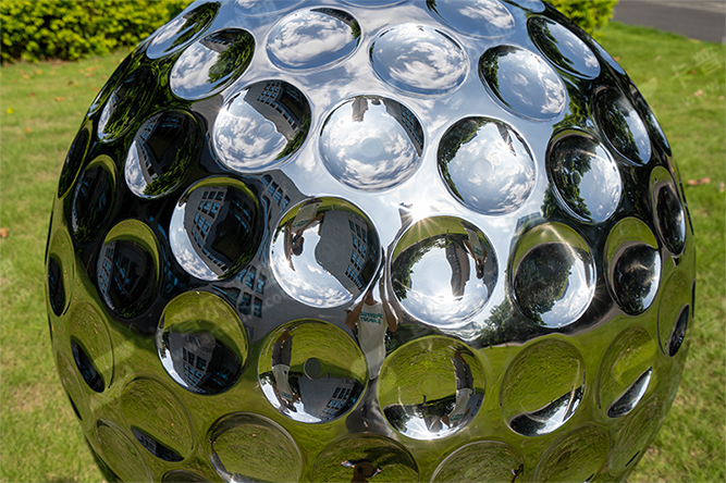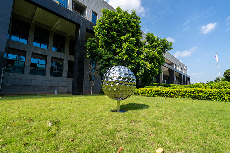 This 90cm stainless steel golf ball sculpture is a sophisticated piece of modern art that blends sport, style, and craftsmanship. The sculpture features a highly polished mirror surface with precise concave dimples, perfectly capturing the classic geometry of a golf ball on a monumental scale.