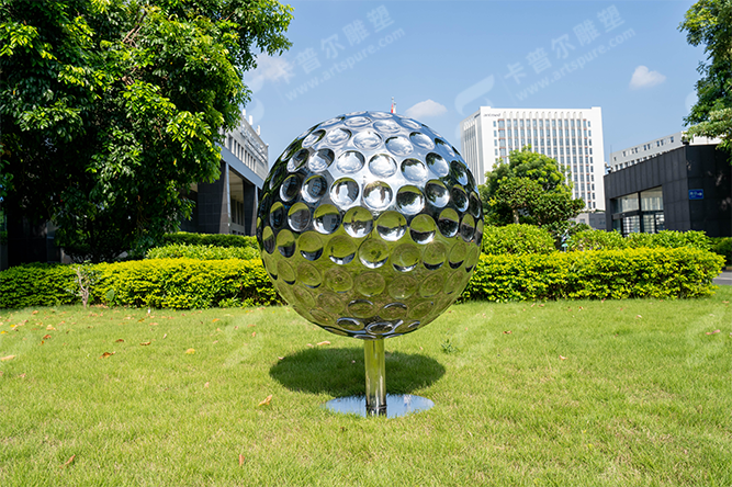 This 90cm stainless steel golf ball sculpture features a stunning mirror-polished finish and precise dimples. Perfect for golf clubs, malls, or modern interiors, it’s crafted from durable stainless steel to embody precision and elegance in contemporary art form.