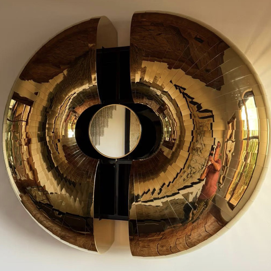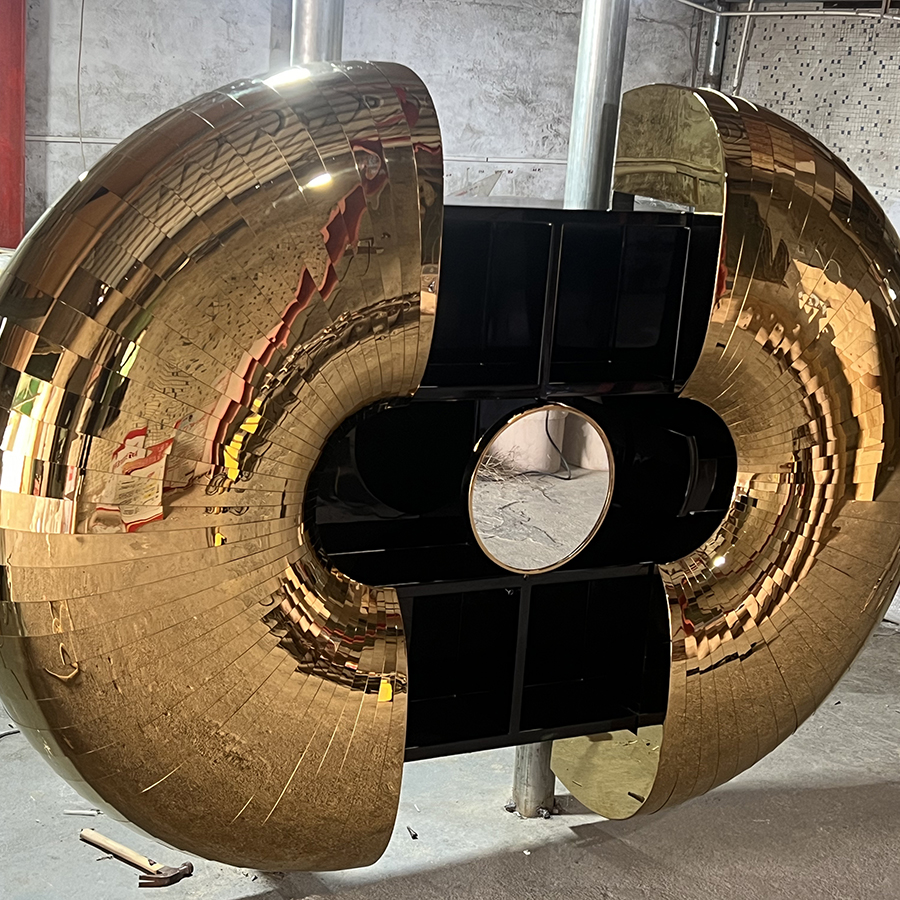 This exquisite stainless steel gold wine cabinet is a statement piece designed for luxury interiors. With a diameter of 137 cm, this sculptural cabinet combines artistry and functionality, offering a sophisticated way to store and display wine collections. The mirror-polished gold finish adds a touch of opulence, reflecting light beautifully and creating a mesmerizing visual effect. The cabinet features an automated opening and closing mechanism, allowing seamless access to your collection while enhancing the modern appeal of this unique piece.