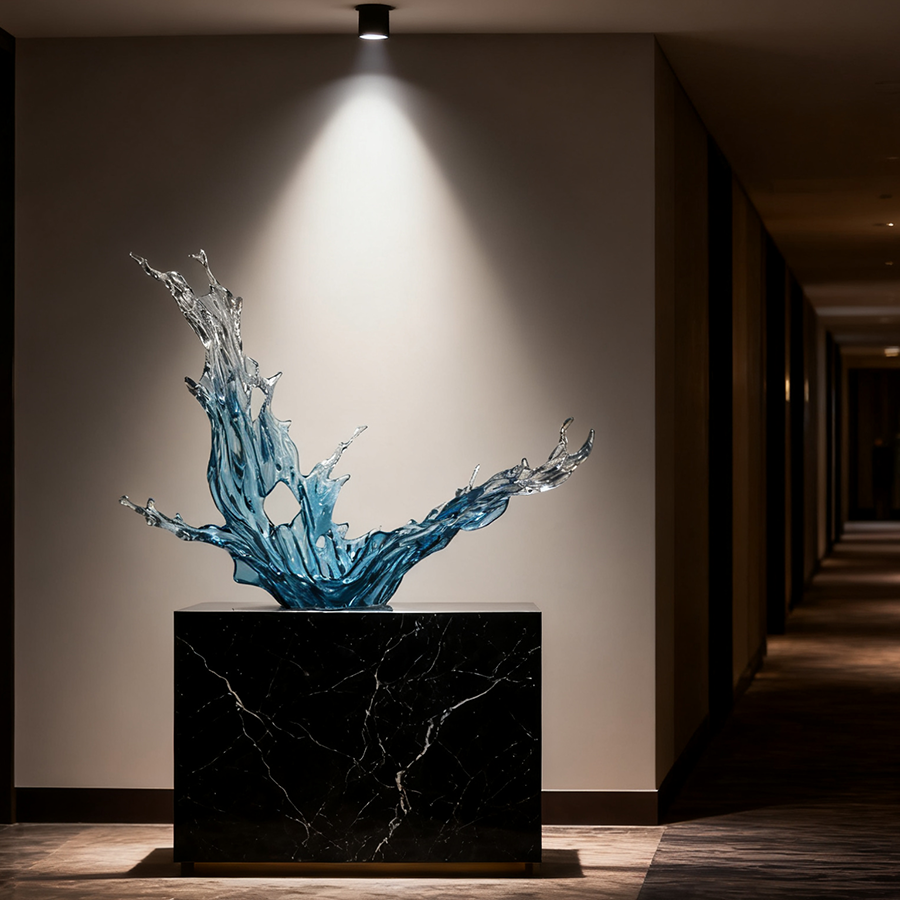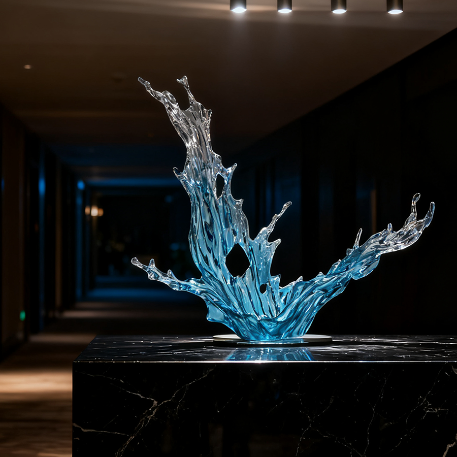 Crafted with high-quality transparent resin, the piece glows beautifully under both natural and artificial lighting, creating shifting highlights that enhance its visual depth. Its unique design makes it ideal for hotel lobbies, luxury residences, art galleries, and corporate spaces, where it serves as both a decorative feature and a statement of refined taste.