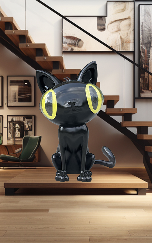 Description:Crafted with an eye for playfulness, this piece features a stylized feline figure with exaggerated features and an animated expression that captures the quirky charm of cartoon art. The fiberglass construction ensures a lightweight ye durable presence, allowing for easy placement in any interior setting. Its smooth, glossy finish invites the touch, while its bright, cheerful colors enliven the space. This cartoon cat sculpture is the purr-fect accent for ay cat lover’s abode, adding a fun and fancilful flair to living rooms, libraries, or children’s play areas.