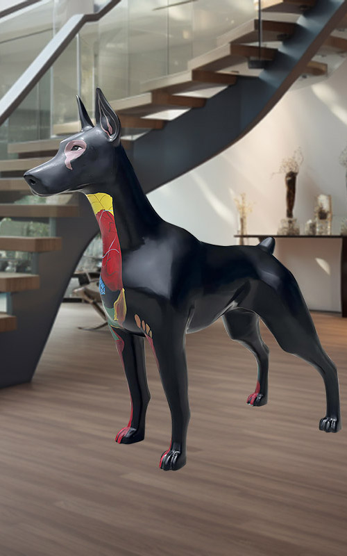 Description: This piece captures the sleek physique and alert stance of the Doberman, rendered in exquisite detail that highlights its muscular frame and noble bearing. Crafted from high-quality resin, it boasts durability and a fine, smooth finish that mimics the luster of a real dog’s coat. The sculpture’s lifelike presence is both commanding and graceful, making it an ideal decorative element for sophisticated environments or as a standout piece in an animal lover’s collection.